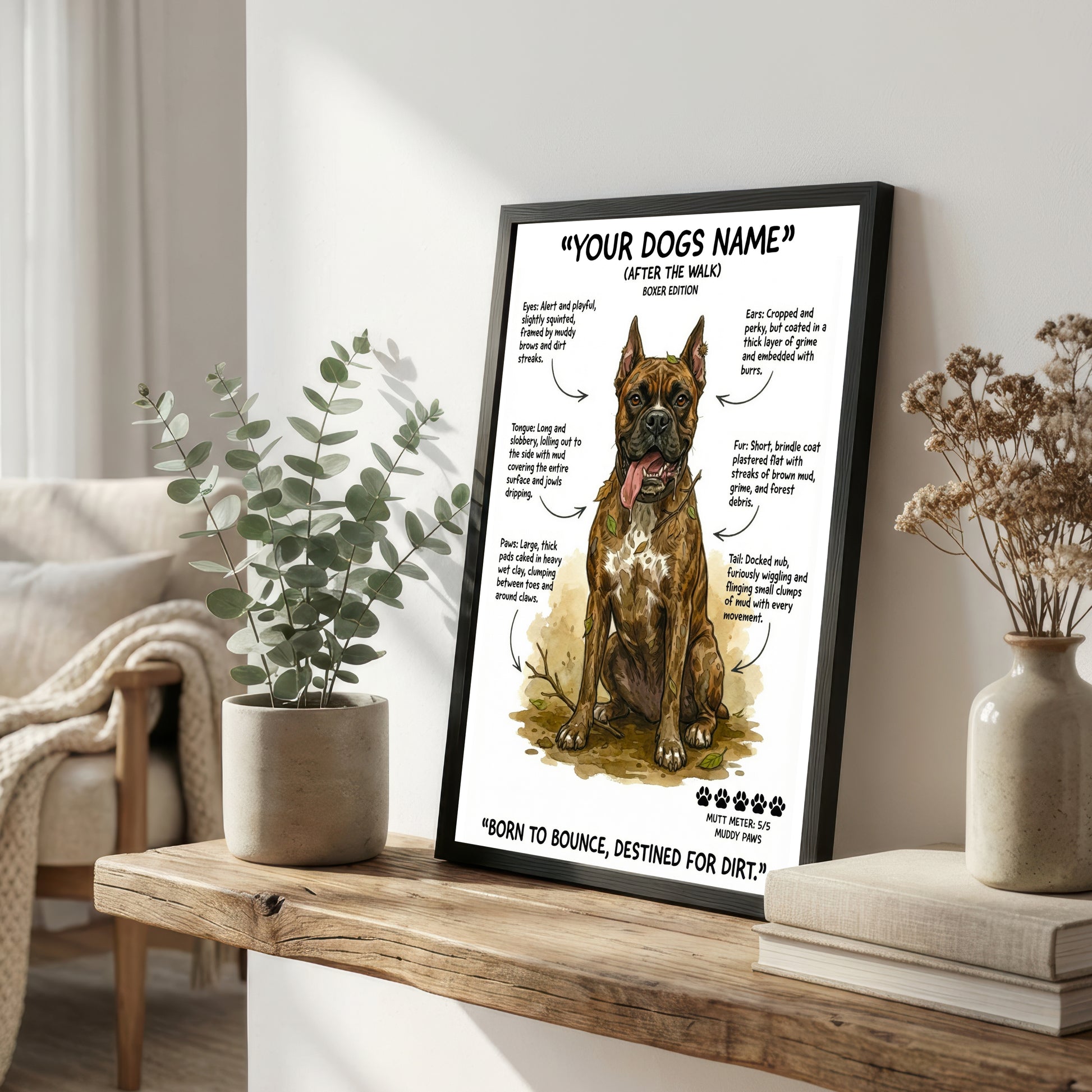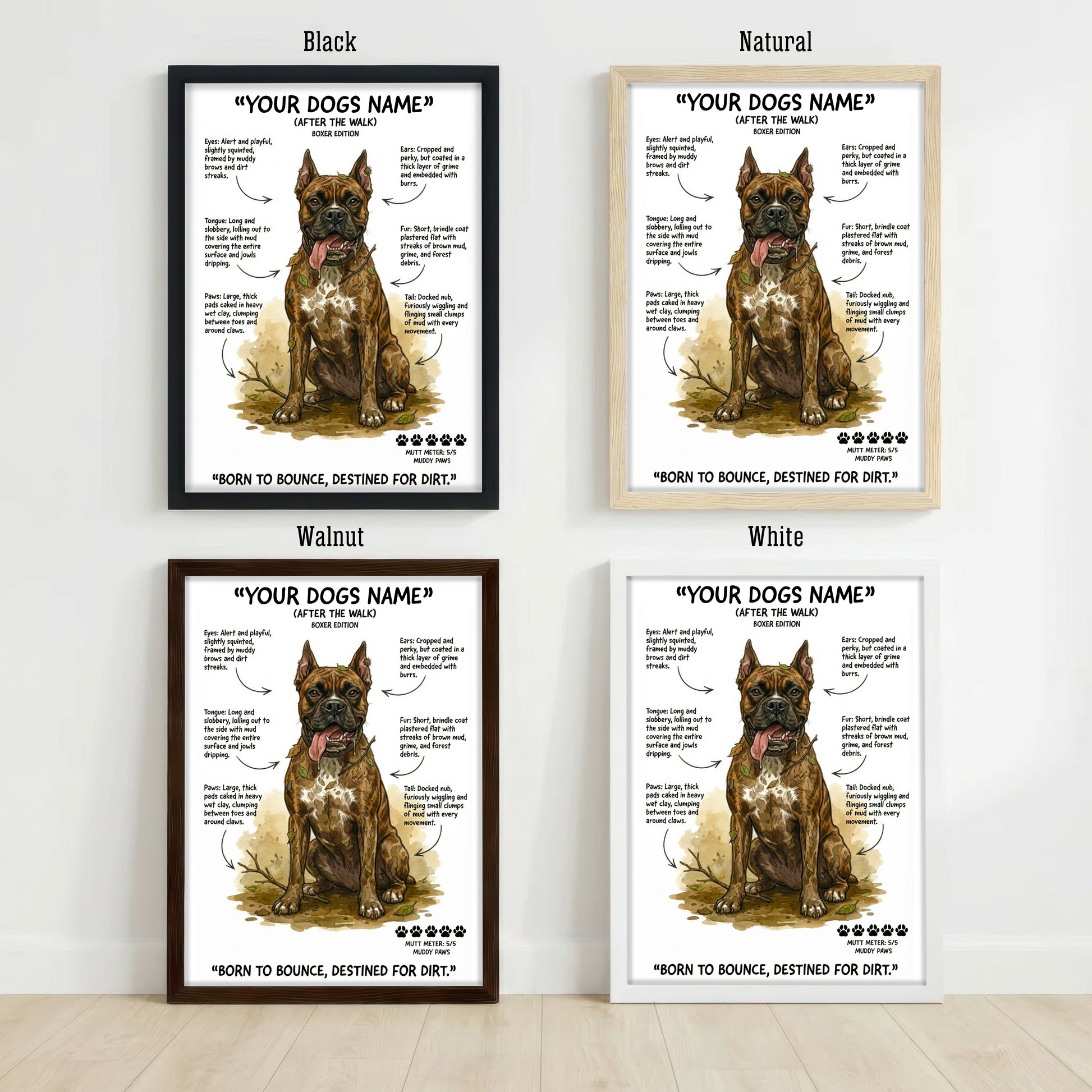 Select your dog's breed, size & framing option. Our "After The Walk" designs capture that muddy, chaotic charm we all know too well.