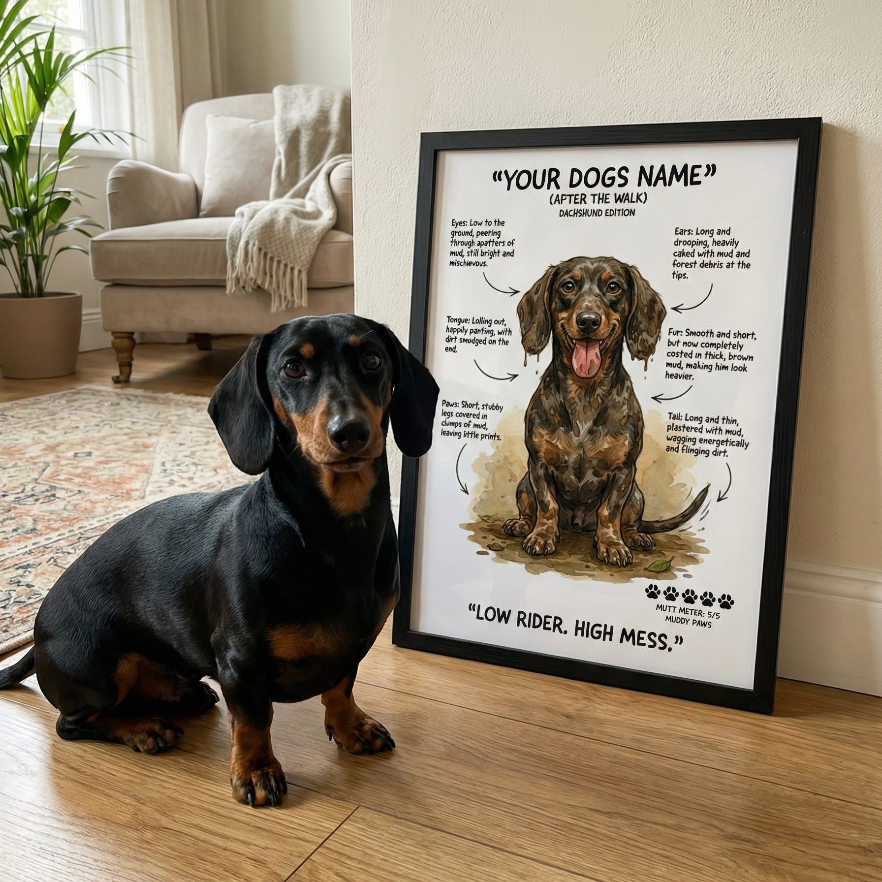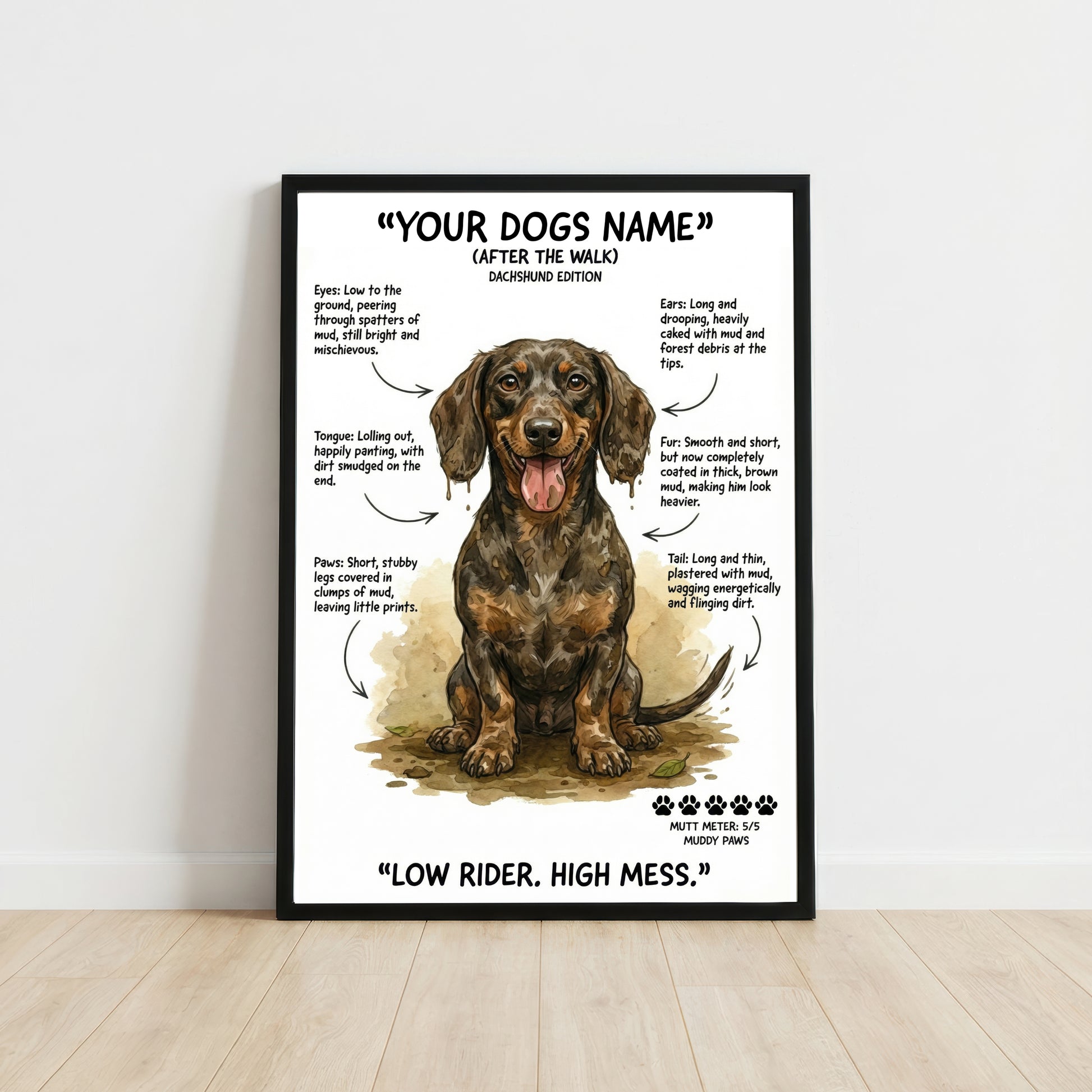 Select your dog's breed, size & framing option. Our "After The Walk" designs capture that muddy, chaotic charm we all know too well.