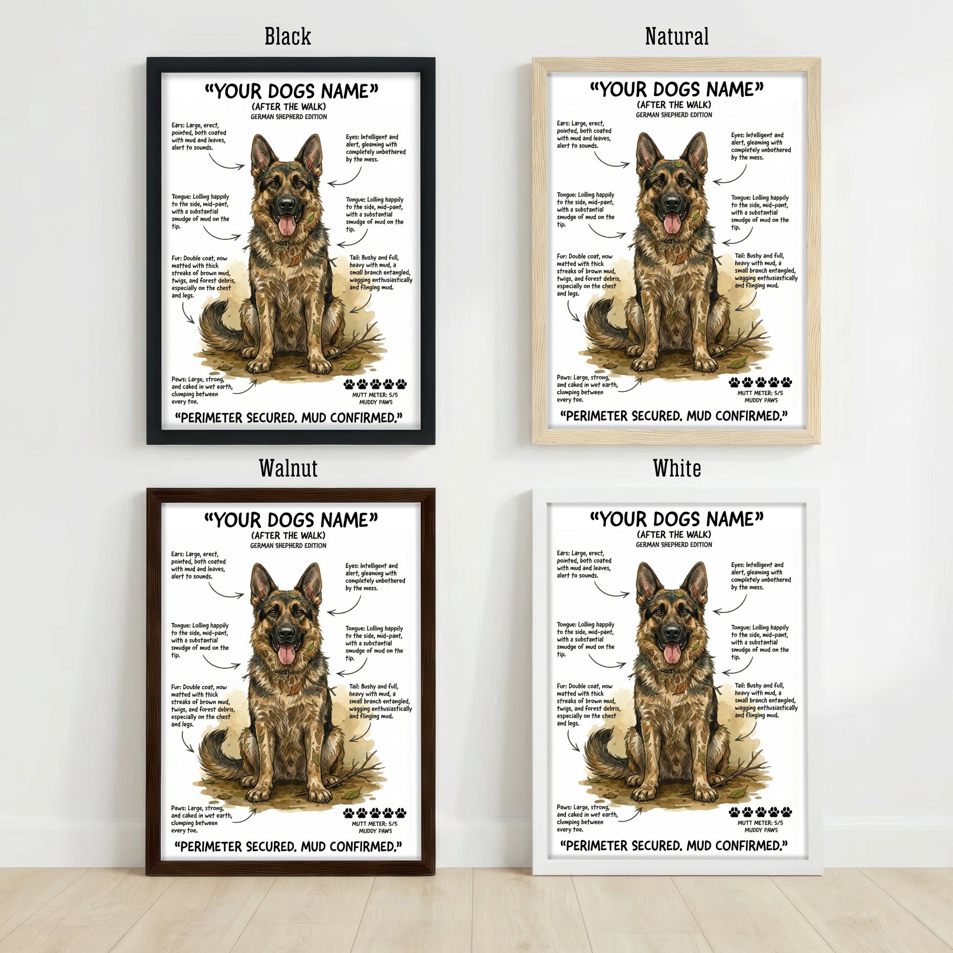 Select your dog's breed, size & framing option. Our "After The Walk" designs capture that muddy, chaotic charm we all know too well.