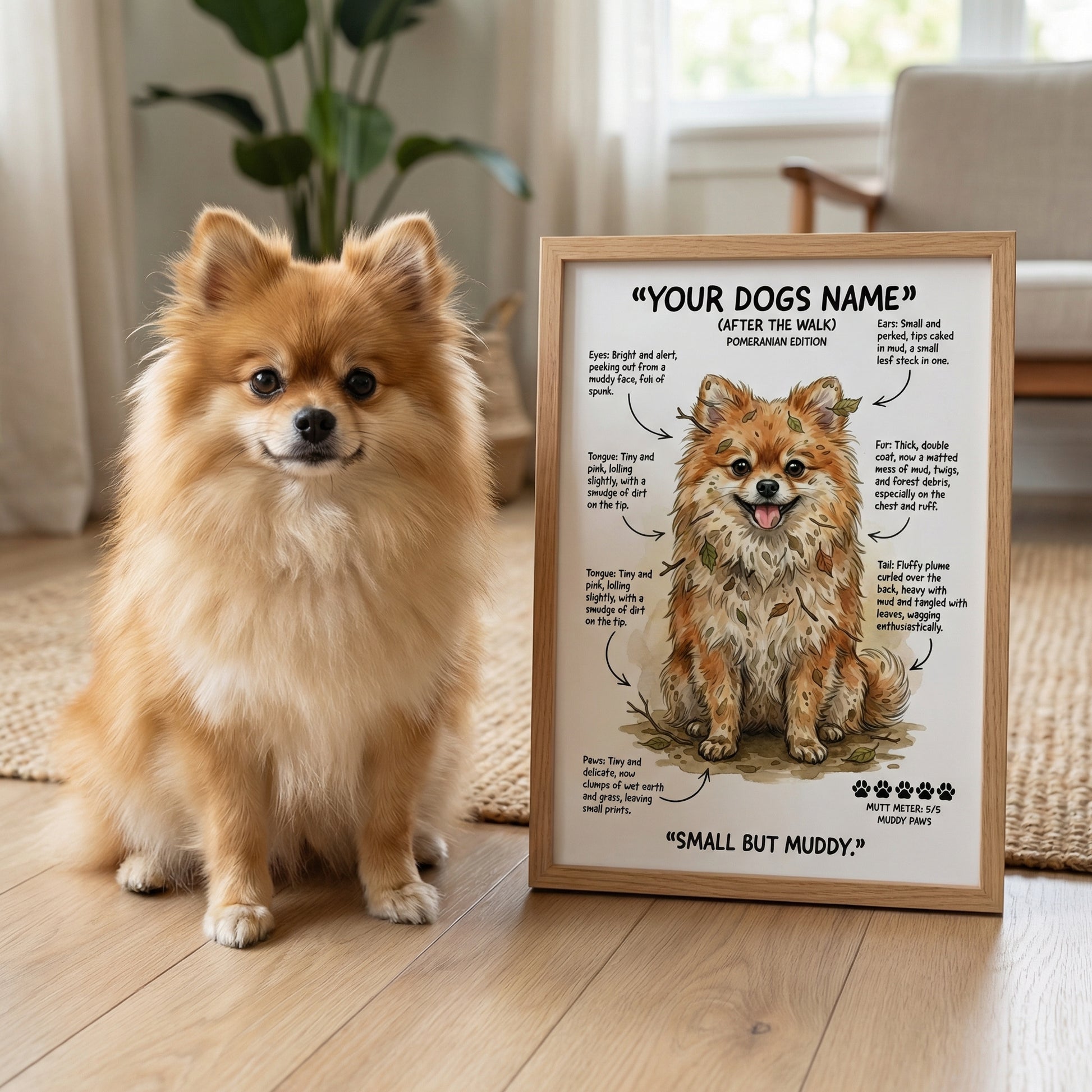 Select your dog's breed, size & framing option. Our "After The Walk" designs capture that muddy, chaotic charm we all know too well.