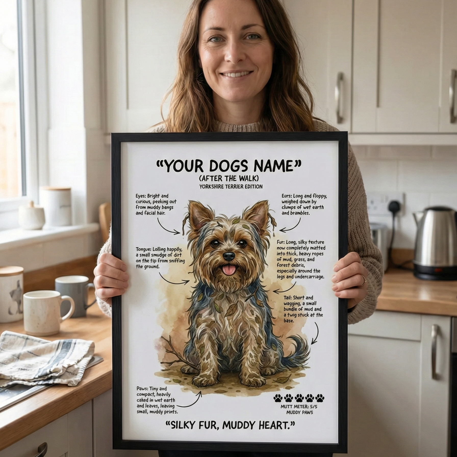 Select your dog's breed, size & framing option. Our "After The Walk" designs capture that muddy, chaotic charm we all know too well.